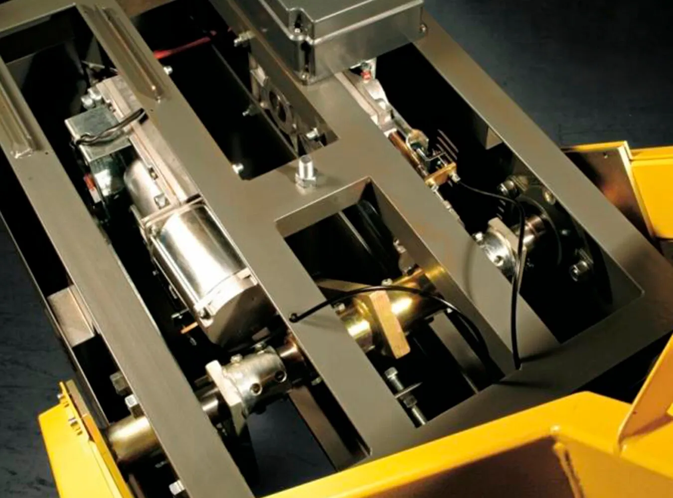 Automatická závora G12000 je vybavená dvoma 24 V DC prevodovými motormi, ktoré pracujú paralelne a zabezpečujú synchronizovaný pohyb pre vyšší výkon aj spoľahlivosť. Pohyb je prenášaný prostredníctvom sústavy prenosových pák, pričom vyvažovací systém s protizávažím zaisťuje dodatočnú stabilitu a plynulú prevádzku.