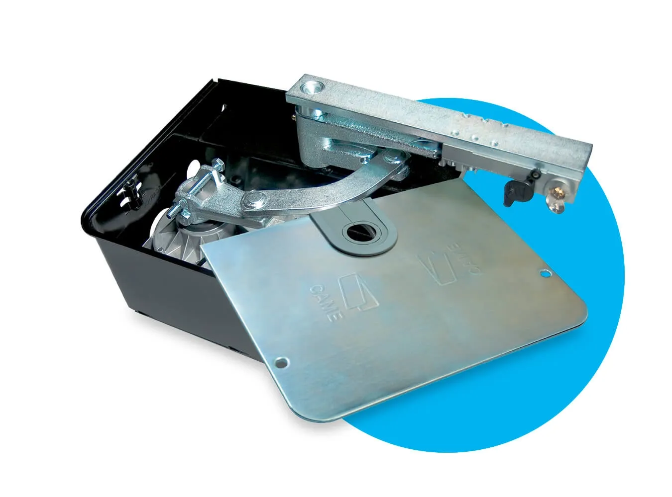 Podzemný pohon s riešeniami na 24 V a 230 V pre brány so šírkou krídla do 3,5 m, s krytím IP67, automatickým opätovným zapojením odblokovacieho systému a integrovanými, nastaviteľnými mechanickými koncovými spínačmi. Voliteľné príslušenstvo umožňuje otváranie až do 180°.