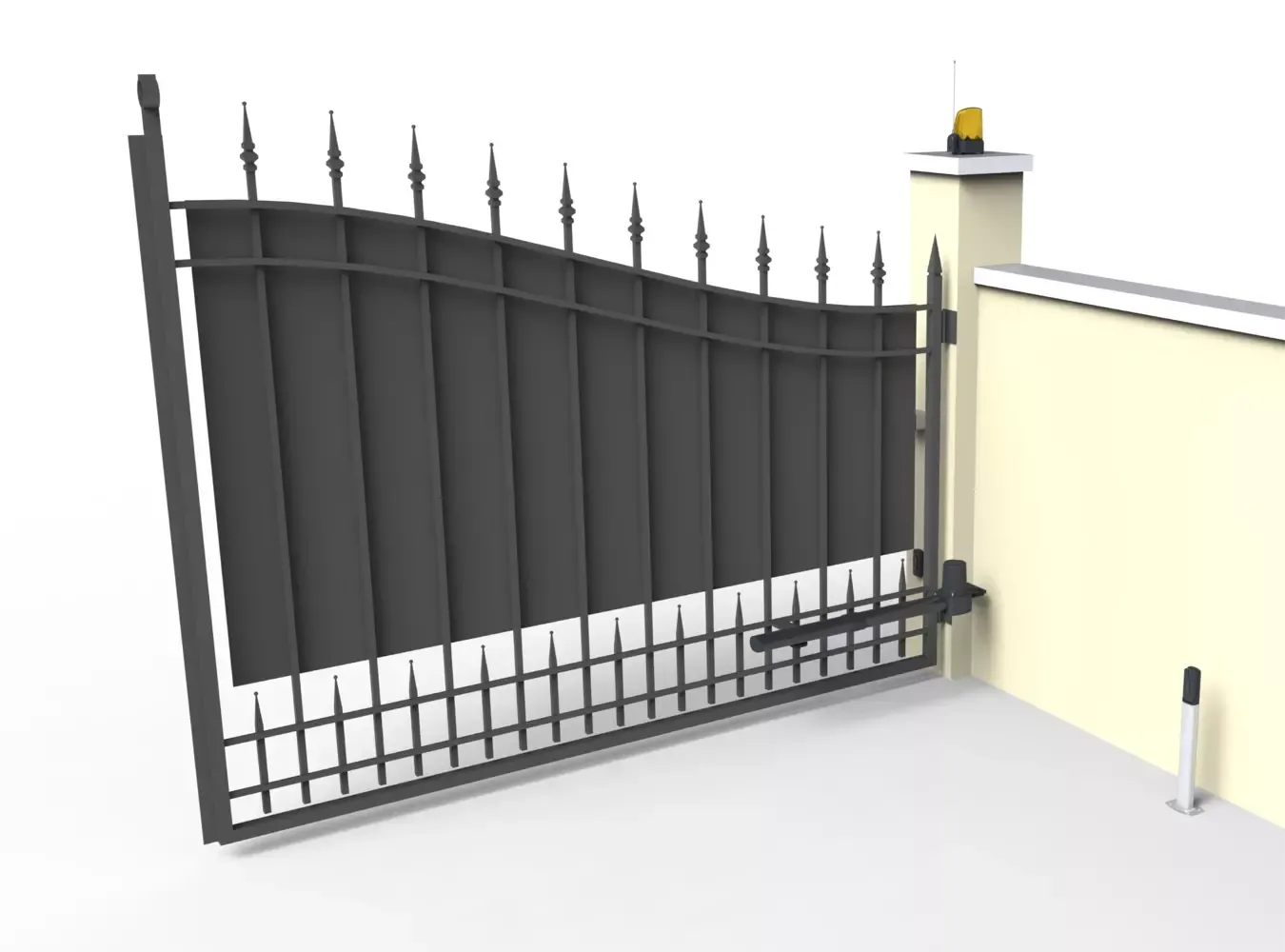 Efektívny rad 230 V pohonov pre rezidenčné použitie s robustnou konštrukciou z liateho hliníka, vybavený nastaviteľnými koncovými spínačmi pre otváranie a zatváranie a integrovanou pákou pre núdzové odblokovanie. Svojim dizajnom je vhodný najmä pre kované brány.