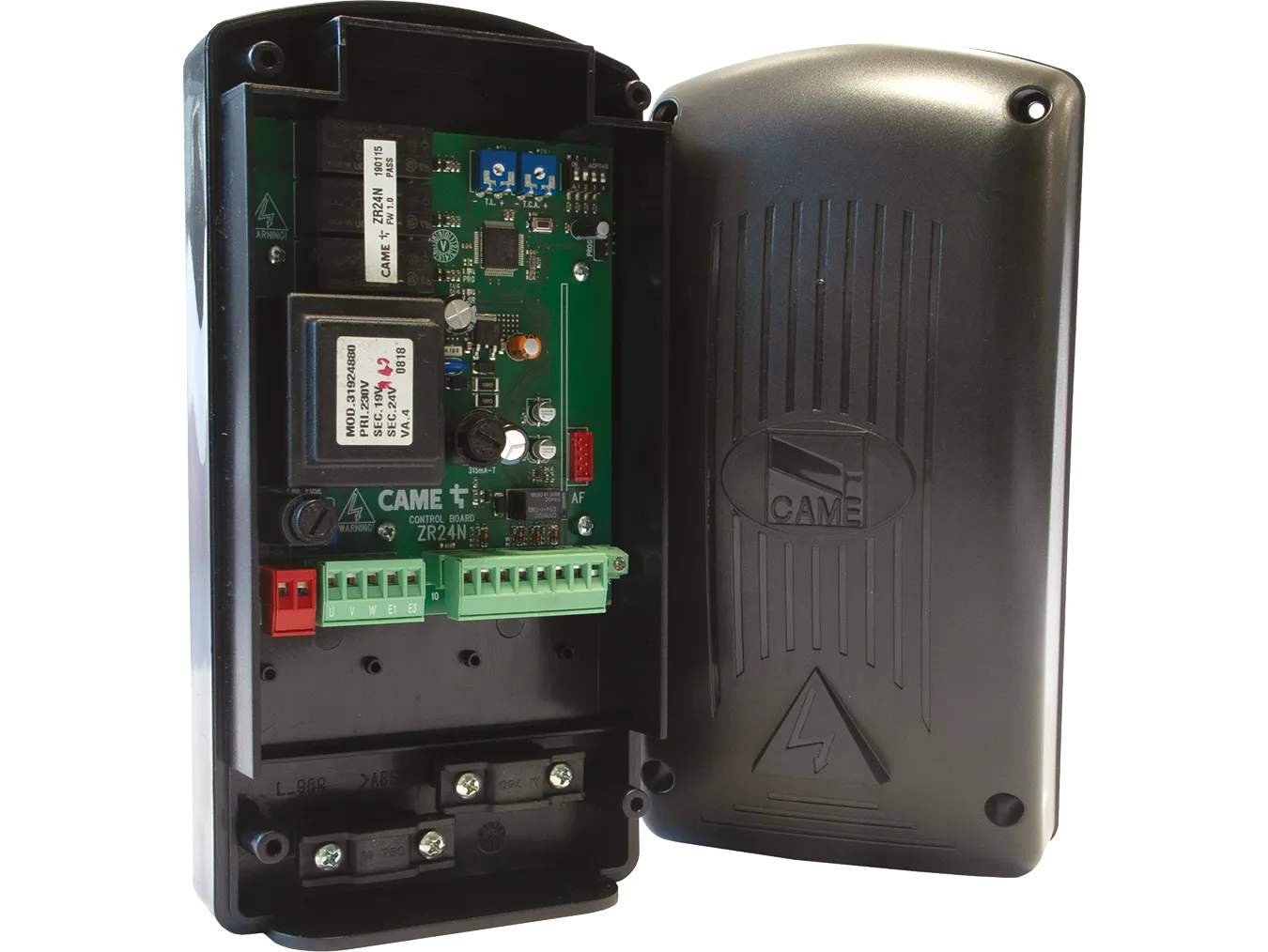 Riadiaca univerzálna elektronika ZR24N pre diaľkové ovládanie automatizácií je navrhnutá predovšetkým pre sériu pohonov H (roll motory) a je vybavená integrovaným rádiovým dekodérom a dvomi bezpečnostnými vstupmi.