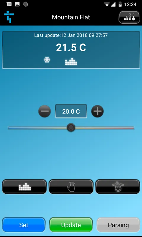 Termostat je navrhnutý s dôrazom na užívateľskú prívetivosť, preto na samotnom displeji nájdete iba tri tlačidlá na výber prevádzkových režimov. Všetky ostatné funkcie, ako sú nastavenia, programovanie a úpravy, sa spravujú prostredníctvom aplikácie THermo App.