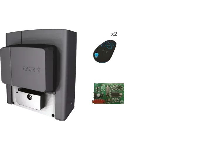 Komplet set BK 230V automatizačná súprava pre posuvné brány s hmotnosťou do 1 200 kg, vybavená riadiacou jednotkou, rádiovou kartou s frekvenciou 433,92 MHz a dvomi štvor-kanálovými vysielačmi TOP.