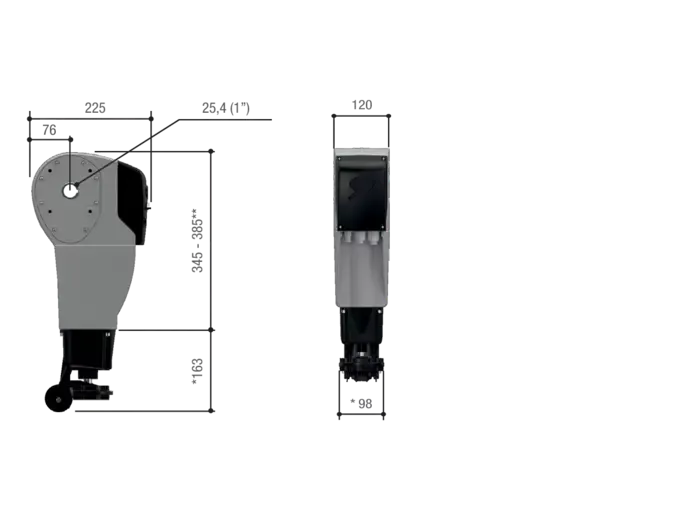 Pohon 230 V pre sekciové, posuvné a harmonikové skladacie priemyselné brány s mechanickými koncovými spínačmi pre koncové polohy otvorenia a zatvorenia. Tlak 120 N.