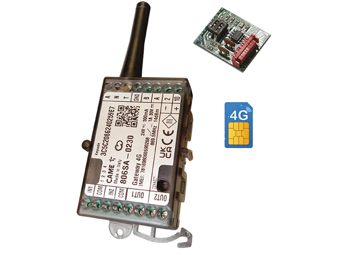 GSM autonómny 4G modul so zabudovanou SIM kartou (konektivita na 4 roky / 480 MB) na pripojenie automatizácie do cloudu cez CAME CONNECT, s možnosťou vzdialeného prístupu cez aplikáciu CAME SETUP pre profesionálnych montážnikov alebo cez mobilnú aplikáciu CAME Automation pre konečných užívateľov. Integrovaná funkcia Quick & Easy pre riadenie kontroly vstupov príležitostných a nepravidelných užívateľov (aj jednorázových). Modul 002RSE je súčasťou balenia.