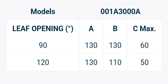 Max. rýchlosť otvorenia na 90° (s) 19 ÷ 25