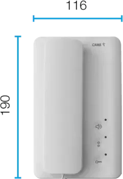 Nástenný interkom s tromi hlavnými mäkkými dotykovými tlačidlami.