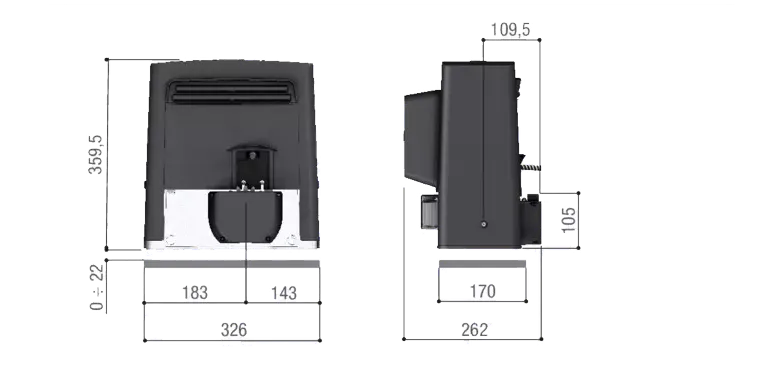 Posuvný 230 V pohon so zabudovanou elektronikou s programovateľným displejom, rádio dekóderom a detekciou prekážok pre zabezpečenie maximálnej bezpečnosti. Pre posuvné brány do šírky 20 m a váhou do 2200 kg. Kryt v šedej farbe RAL7024. Modul ozubenia 6.