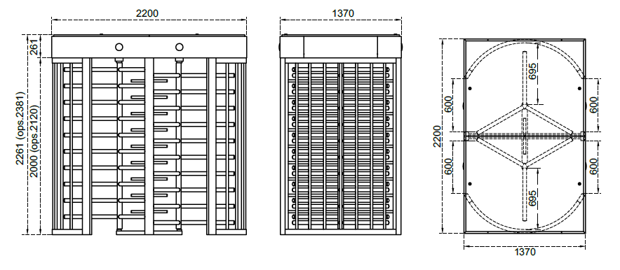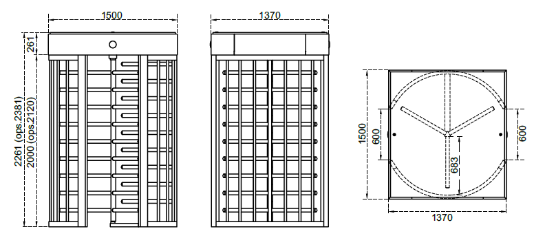 Celovýškový turniket s 3-ramenným (120°) mechanizmom, dostupný v jednorotorovom alebo dvojrotorovom vyhotovení (BT 312 S / BT 312 D). Obojsmerná prevádzka je elektromechanická alebo voliteľne motorizovaná, s lakovanou alebo nerezovou konštrukciou a rotorom (dostupné povrchové úpravy sú uvedené nižšie). Zariadenie je vybavené indikátormi stavu a priechodu v prednej časti a horným LED osvetlením priechodu.