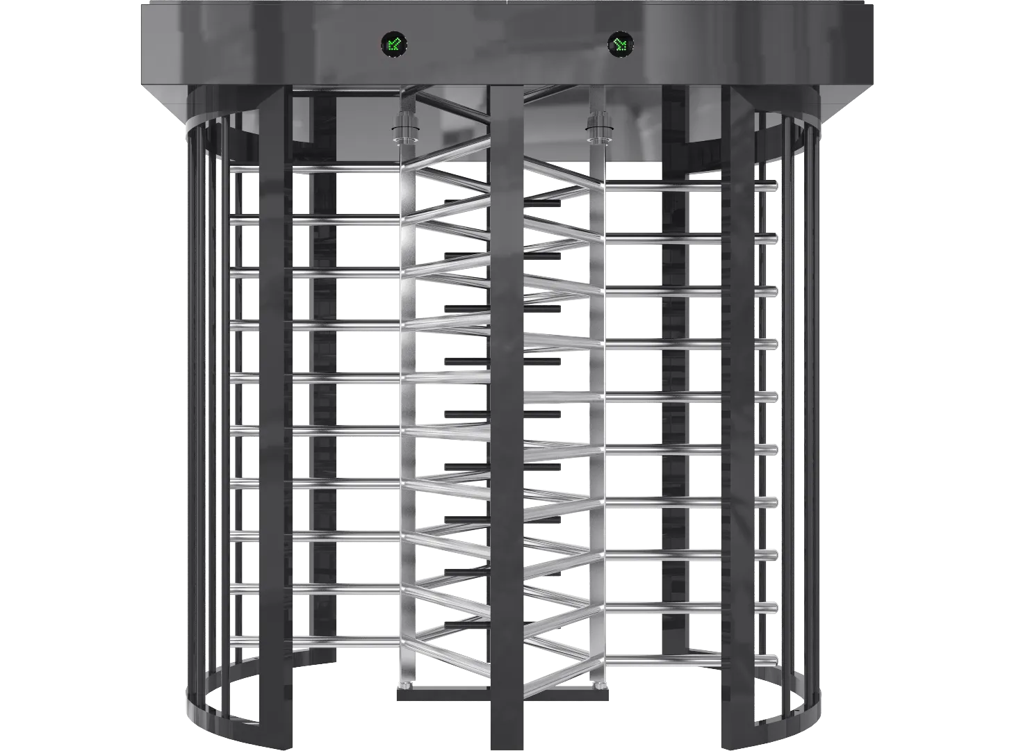 Režim pri výpadku napájania: Turniket automaticky uvoľní priechod a umožní voľné otáčanie centrálneho rotora v oboch smeroch (voliteľne je možné nastaviť voľný pohyb len v jednom smere a opačný ponechať zablokovaný).
