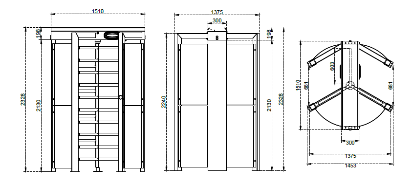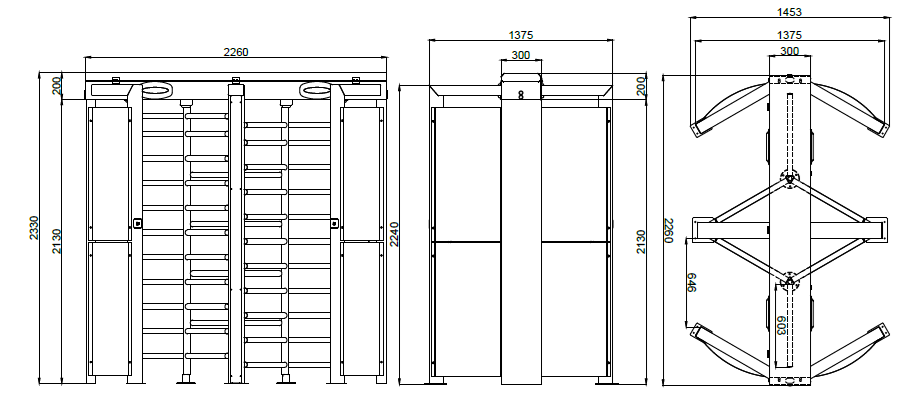 Celovýškový turniket s 3-ramenným (120°) rotorovým mechanizmom, dostupný v jednorotorovom alebo dvojrotorovom vyhotovení (BTG 300 S / BTG 300 D). Obojsmerná prevádzka je elektromechanická alebo voliteľne motorizovaná, s lakovanou alebo nerezovou konštrukciou a rotorom (dostupné povrchové úpravy sú uvedené nižšie). Zariadenie je vybavené indikátormi stavu a priechodu v prednej časti a horným LED osvetlením.