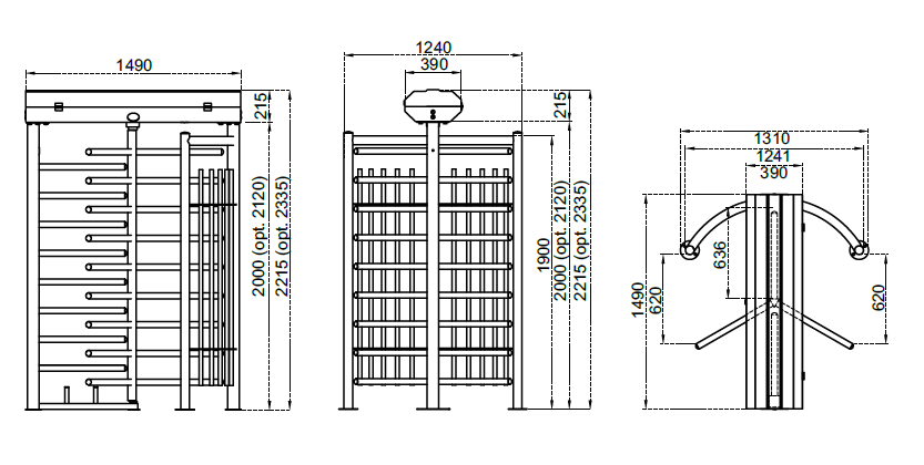 Celovýškový turniket s 3-ramenným (120°) rotorovým mechanizmom, dostupný v jednorotorovom alebo dvojrotorovom vyhotovení (BTX 300 N1 S / BTX 300 N1 D). Obojsmerná prevádzka je elektromechanická alebo voliteľne motorizovaná, s lakovanou alebo nerezovou konštrukciou a rotorom (dostupné povrchové úpravy sú uvedené nižšie). Zariadenie je vybavené indikátormi stavu a priechodu v prednej časti a horným LED osvetlením priechodu.