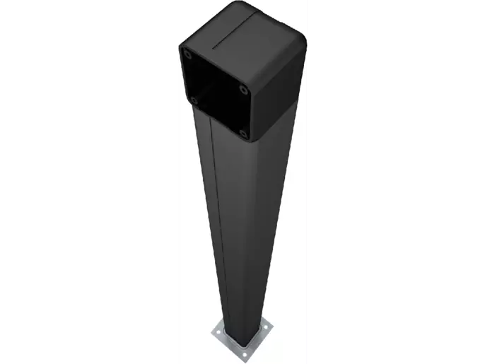 Stĺpik vyrobený z čierneho, eloxovaného hliníka pre systémové zabezpečenie, odolný proti korózii a poškriabaniu.