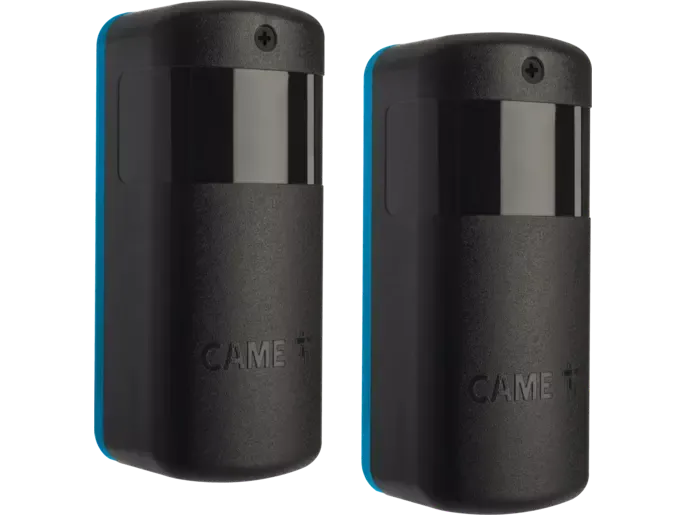 Pár vonkajších, horizontálne nastaviteľných synchronizovaných infračervených fotobuniek s napájaním CXN BUS. Povrchová montáž. Dosah: 20 m.