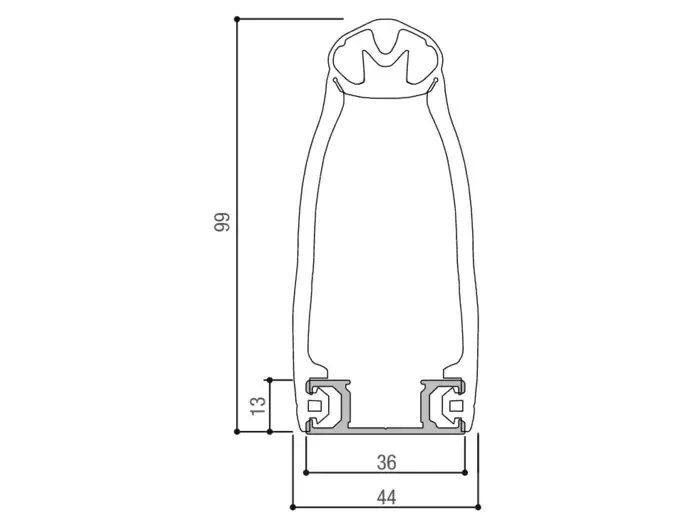 Citlivé odporové bezpečnostné gumenné rebro s profilom 44 × 99 mm.