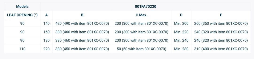Max. rýchlosť otvorenia na 90° (s) 13 ÷ 30