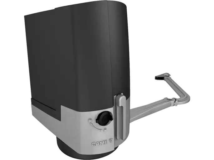 Nevratný 24 V zúžený prevodový SLAVE motor bez elektroniky, s kĺbovým prevodovým ramenom s C max. 150 mm, určený pre krídlové brány s krídlom do šírky 2 m a váhou do 200 kg. Farba sivá (RAL7024).