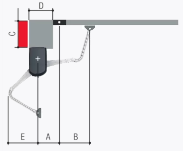 Nevratný 24 V zúžený prevodový MASTER motor so zabudovanou elektronikou, s kĺbovým prevodovým ramenom s C max. 150 - 300 mm, určený pre krídlové brány s krídlom do šírky 2,3 m a váhou do 200 kg. Farba sivá (RAL7024).