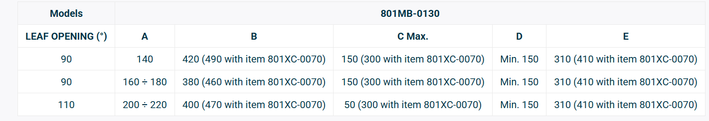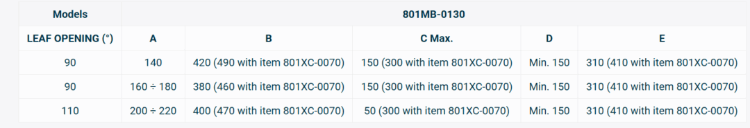 Max. rýchlosť otvorenia na 90° (s) 13 ÷ 30