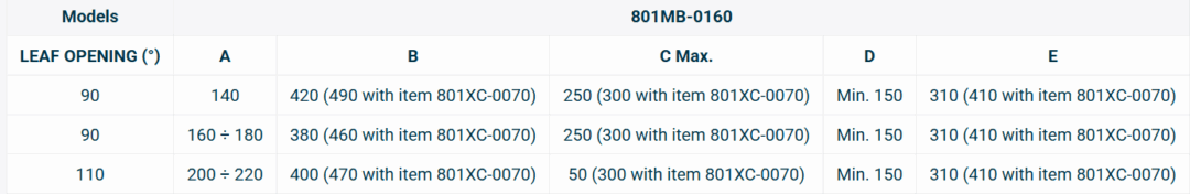 Max. rýchlosť otvorenia na 90° (s) 13 ÷ 30