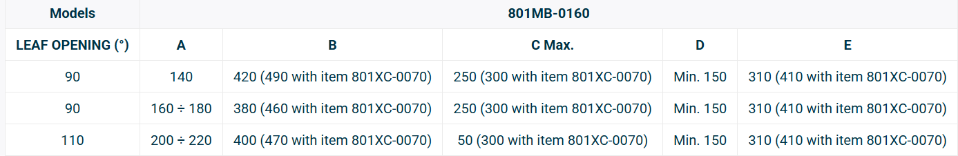 Max. rýchlosť otvorenia na 90° (s) 19 ÷ 25
