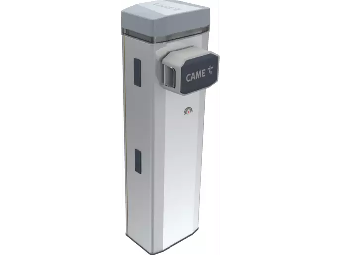 Automatická závora s nevratným prevodovým motorom 24 V DC s enkodérom a elektronikou, skrinka z matnej nehrdzavejúcej ocele AISI 304 s predprípravou na montáž príslušenstva. Vyvažovacia pružina je súčasťou balenia.