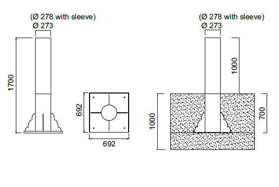 •  Rozmery (mm): Ø273 (Ø278 s plášťom) x V 1000 (nad zemou)