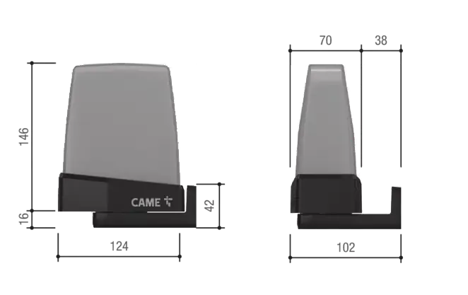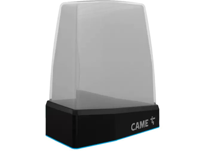 RGB LED výstražná lampa (maják) s napájaním CXN BUS, s bielym krytom a možnosťou nastavení rôznych farebných režimov svietenia vďaka RGB LED technológii. Obsahuje tiež konektor pre CAME KEY gateway bránu na pripojenie pohonu do cloudu a konektor pre "AF" kartu prijímača pre lepší príjem na vyvýšenom mieste.