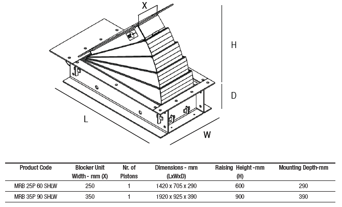 • MRB 35P 90 SHLW: 1920 x 925 x 390 mm