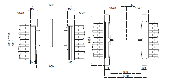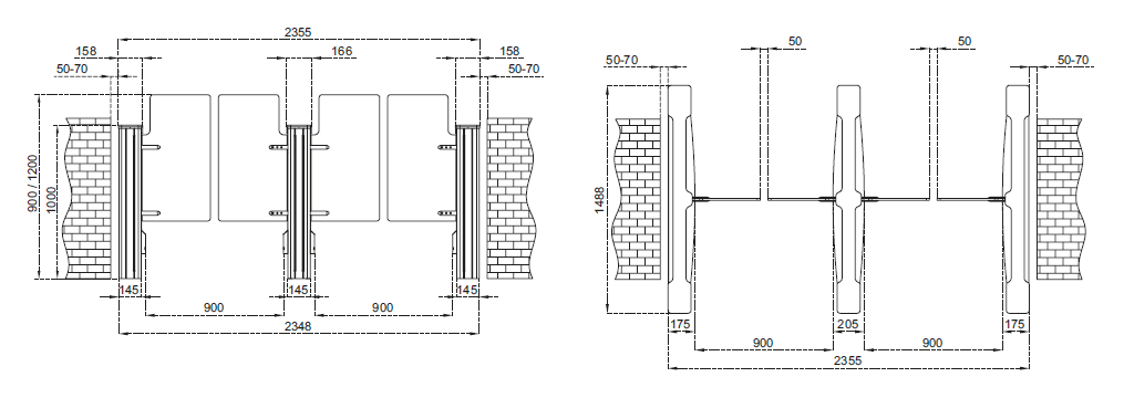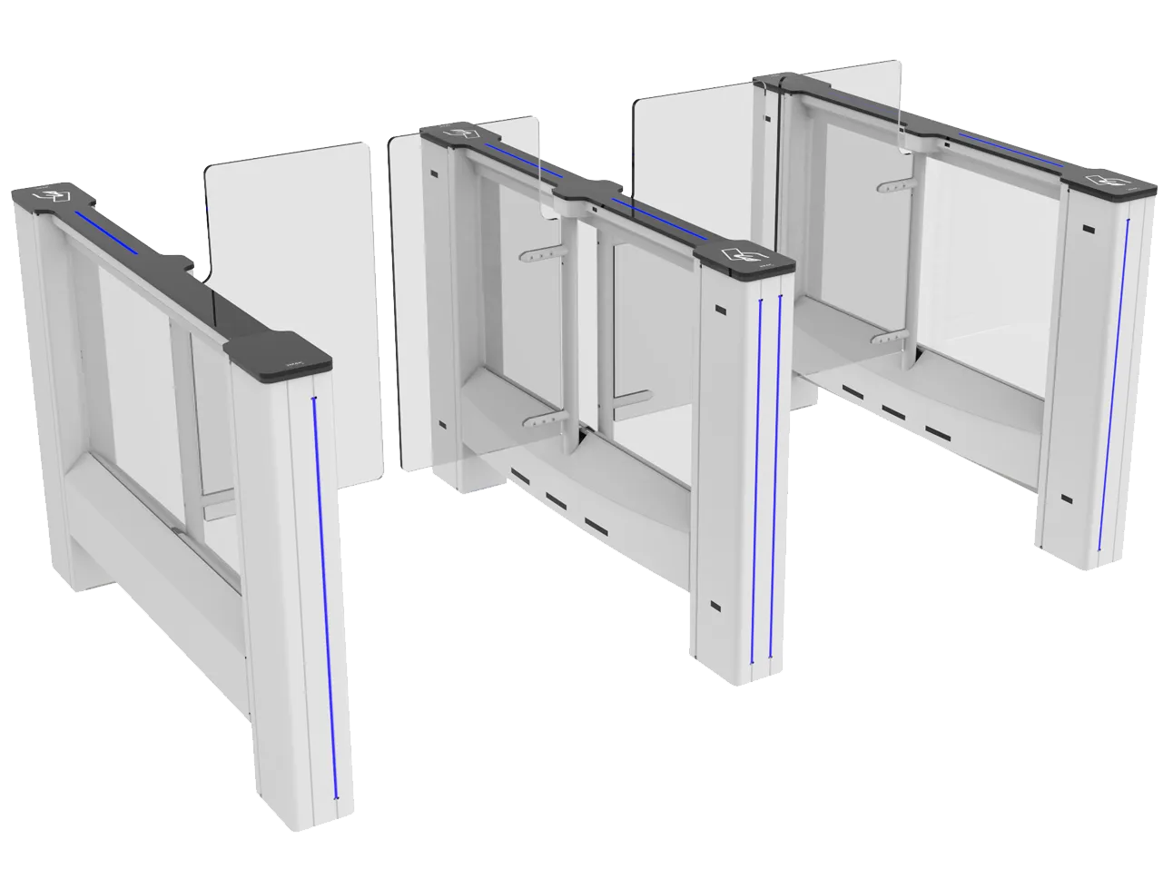 Konštrukcia je vyrobená z brúsenej nerezovej ocele AISI 304 (voliteľne AISI 316), horný panel a krídla z čierneho tvrdeného skla (dostupná výška krídiel 900 alebo 1200 mm). Vybavená je indikátormi stavu na bočných stranách a indikátorom priechodu v hornej časti. Určená pre kombinovanú prevádzku (master a slave). Monitoring vstupu zabezpečuje integrovaný infračervený systém.  Produkt je dostupný v jednoduchej, dvojitej a kombinovanej verzii, dodávaný s montážnou šablónou na inštaláciu do podlahy pre šírku priechodu 900 mm.
