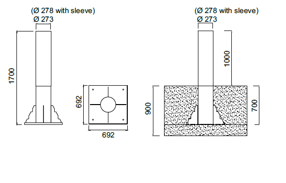 •  Rozmery (mm): Ø 273 (Ø 278 s plášťom) x V 1000 (nad zemou)