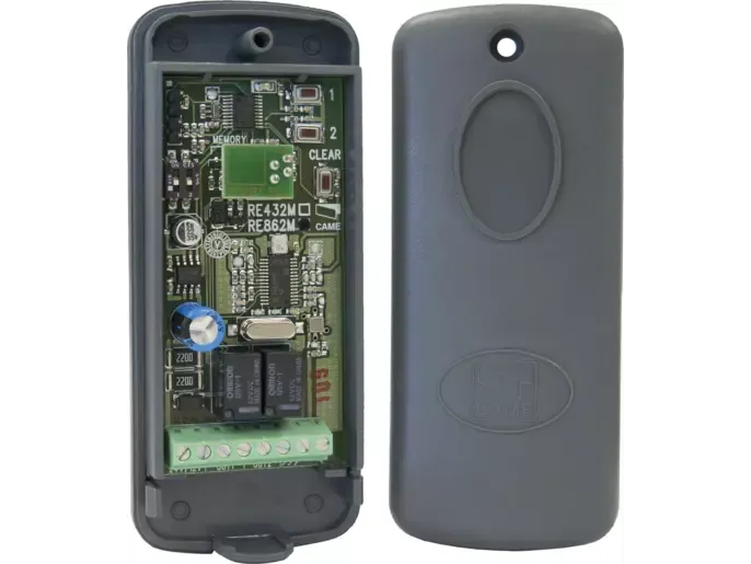 Produkty / Ovládacie a bezpečnostné príslušenstvo / Prijímače / RE - externé prijímače pre kontrolu vstupu do 250 užívateľov / externý prijímač, 2-kanálový, 868.35MHz pre fixný i plávajúci kód