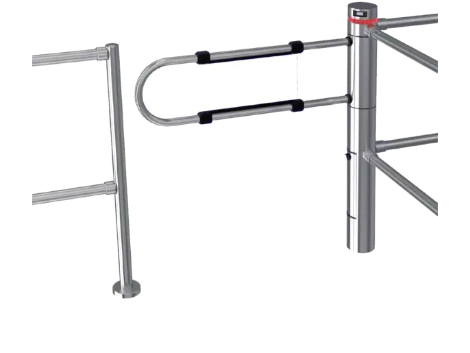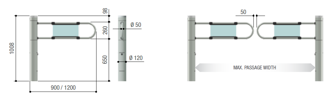 Pri párovej inštalácii krídlových turniketových zábran ponúka prechodovú šírku až do 2450 mm. Konštrukcia s povrchovou úpravou v chrómovom alebo čiernom lakovanom vyhotovení je určená pre integráciu CAME zábrany (Ø 40 mm) a umožňuje osadenie jedného alebo dvoch aktivačných radarov.