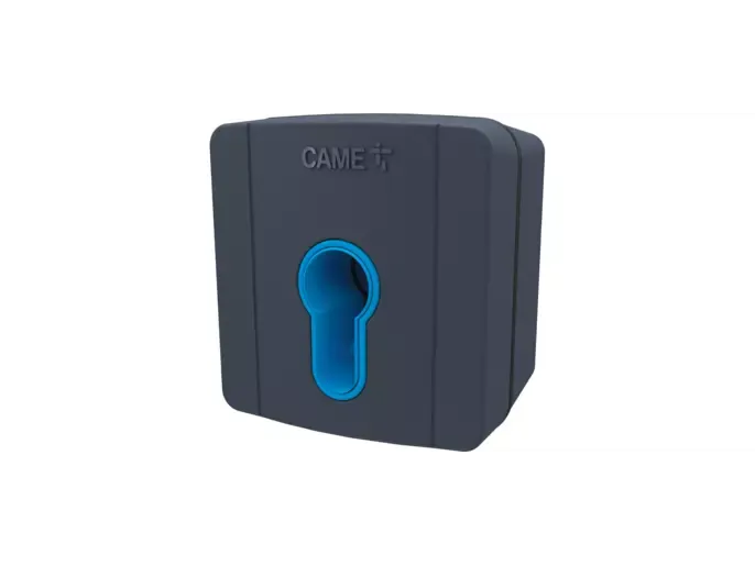Kľúčový ovládač s napájaním 12/24 V AC/DC, bez cylindrickej DIN vložky a modrým LED podsvietením, určený na povrchovú montáž
