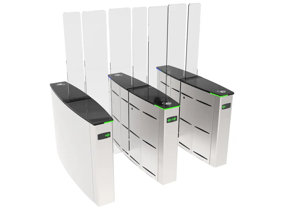 Obojsmerná, motorizovaná rýchlostná vstupná bránka s posuvnými krídlami.