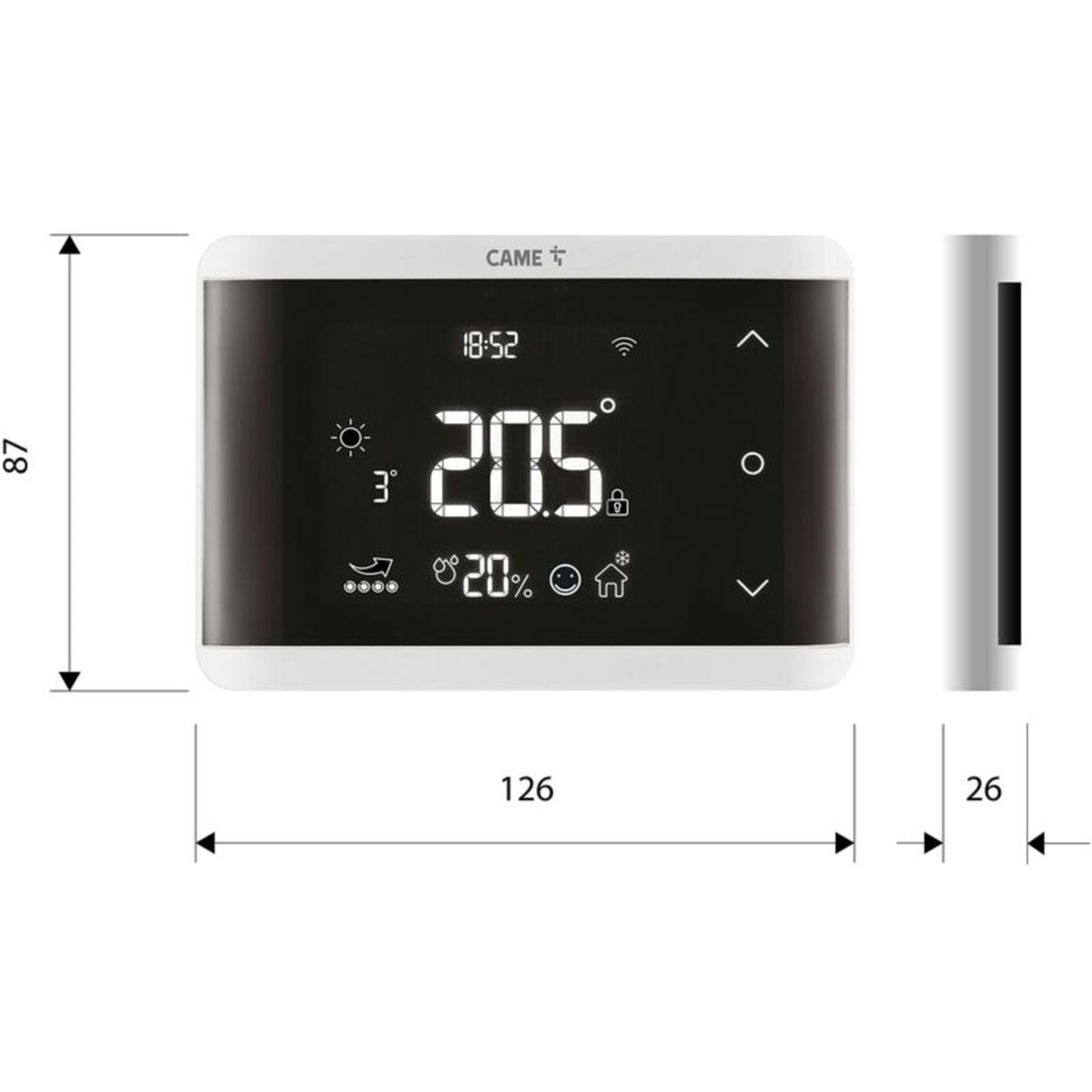 Wi-Fi chronotermostat s dotykovými tlačidlami (soft-touch), určený na zápustnú inštaláciu, biely. Napájanie 230 V AC.