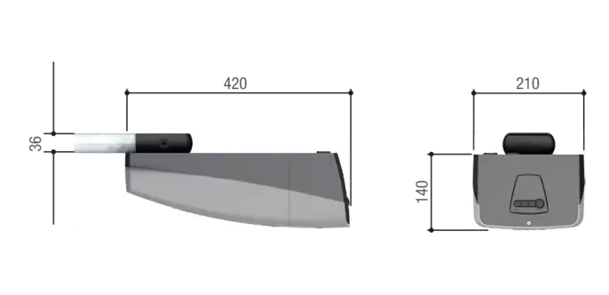 Prevodový motor 24 V DC vhodný na intenzívne používanie. Zaisťuje prevádzku aj počas výpadkov prúdu.